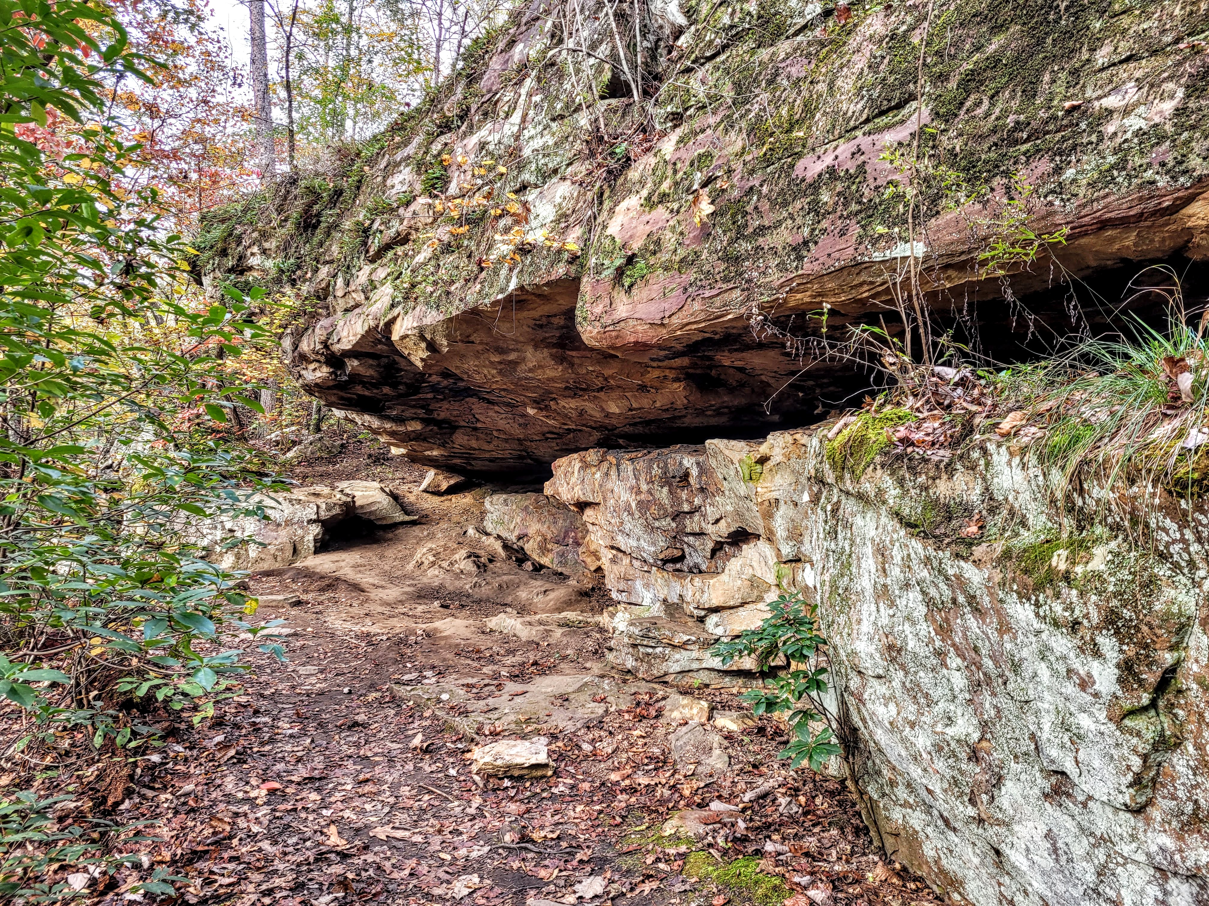 We actually hiked the trail off the map, turned around, and came back home. Even with the leaves falling, there was still greenery from the evergreens. Part of the trail ran along the Black Creek, which was accessible in some spots (bottom photos).I threw in the fungi picture because there were several species of fungi, all beautiful and different. From the trail hikers can look down on the suspension bridge that crosses the creek, on another hike, I will cross it. We got back home just as it started to rain.